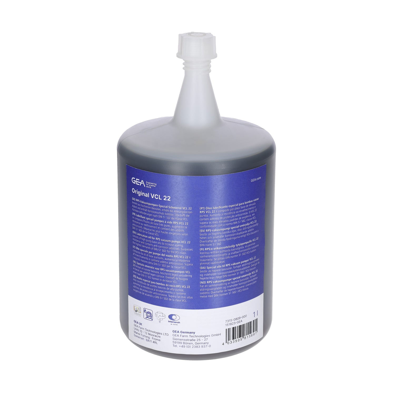 GEA VCL 22 Vakuumpumpenöl 1 Liter Flasche 7315-0809-000 (151823-GEA / 73150809000)