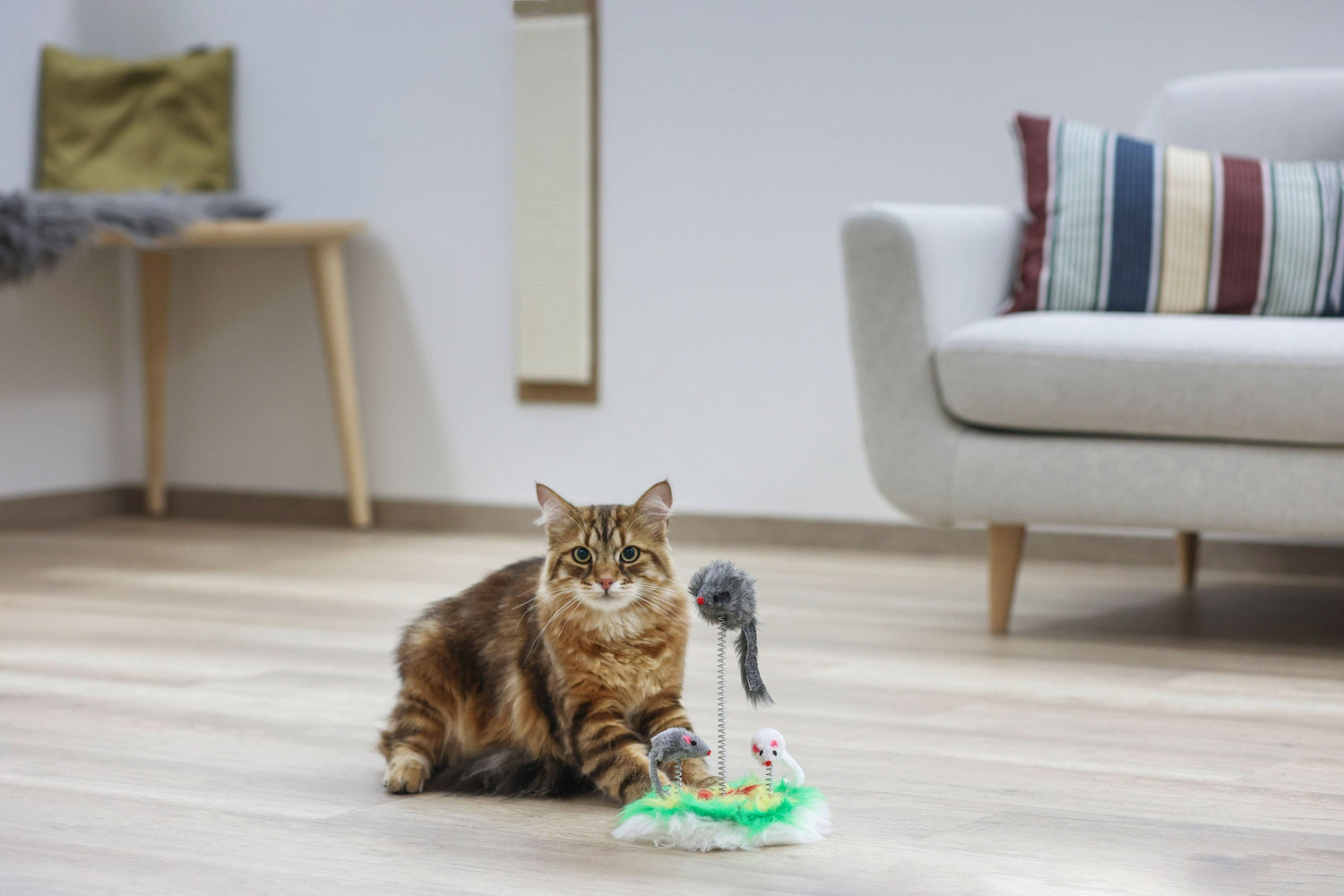 • ø¸ 17 cm • mit diesem Spielspaß werden das Anschleichen und der Beutefang spielerisch geübt • durch die Befestigung auf Feder bewegt sich immer etwas und animiert so die Katze • dies wird durch den CatNip-Duft noch verstärkt