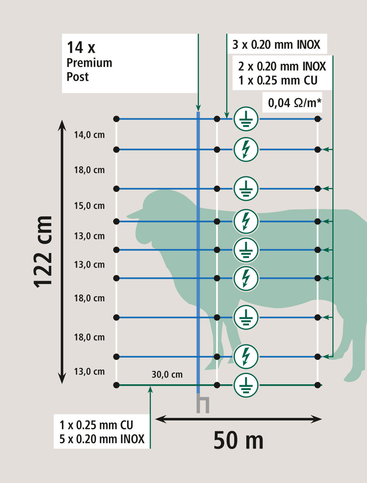 AKO TitanNet Premium Vario,50m,+/- weiß/blau, 122cm, Doppelspitz - 27833 online bestellen bei Neyer Landtechnik.