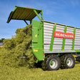 The HTW 35 S is equipped as standard with a conical, screwed structure, a transport floor made of steel, a drive on both sides of the transport floor and a hydraulically foldable chopping flap. A hydraulically folding cargo area cover is available upon request. Operation via ISOBUS is possible.