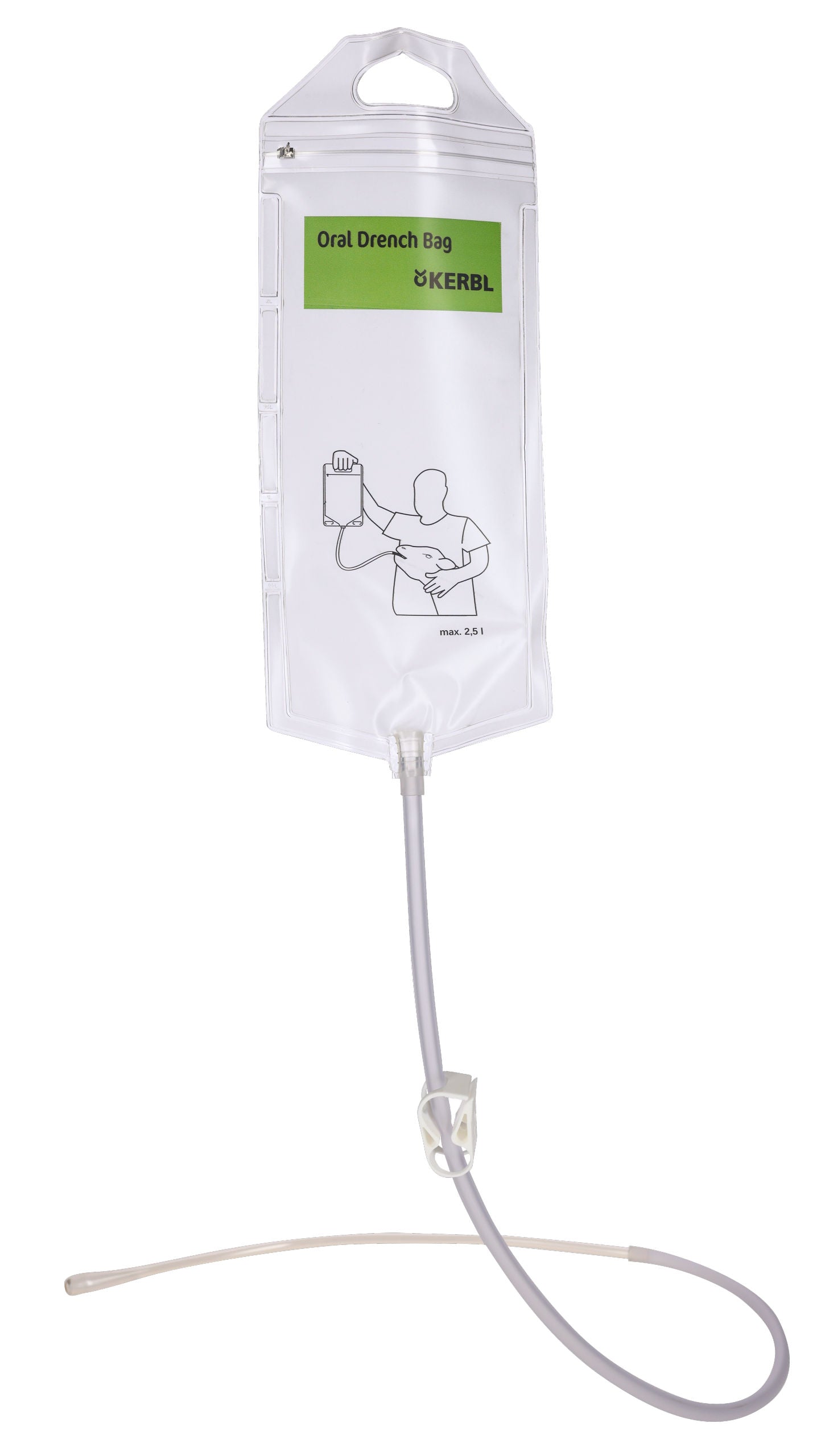 KERBL 14678: transparenter Fütterungsbeutel zur Flüssigkeitstherapie und elektrolytischen Behandlung von Kälbern, mit Zippverschluss zum leichten Befüllen und Reinigen, mit flexibler Sonde inkl Schlauch, mit Schlauchklammer zur Regulierung der Tränkegeschwindigkeit und zum Verschließen des Schlauchs.