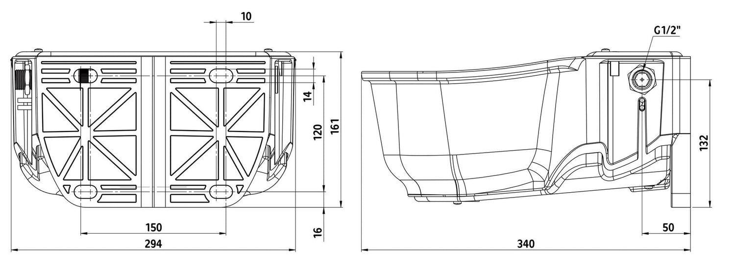 - Wasseranschluss 1/2" von links und rechts möglich
