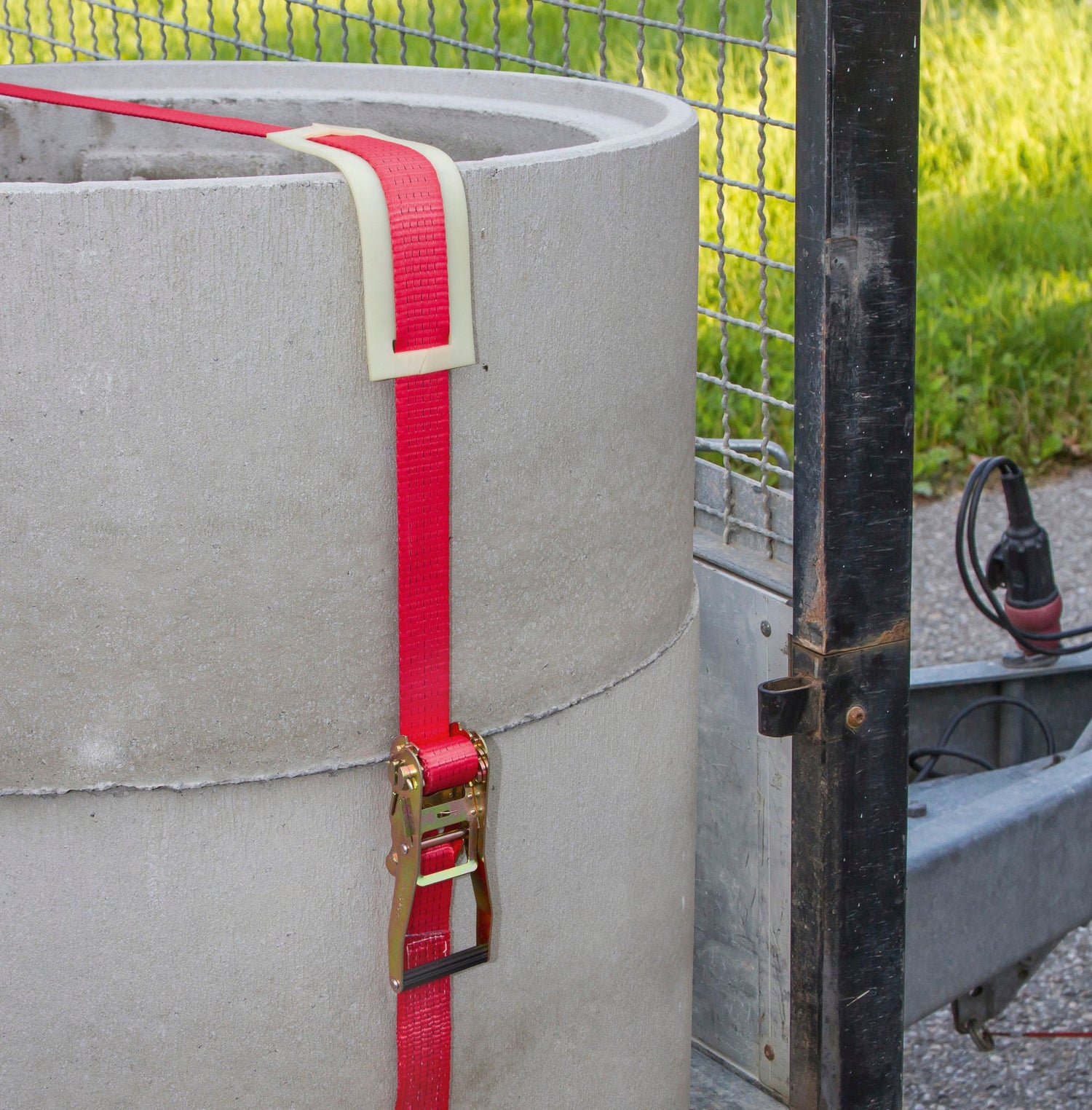 • zweiteilig mit Spitzhaken und Ratsche • zulässige Zugkraft siehe Tabelle • strapazierfähiges Polyestergewebe • PU-imprägniert zum besseren UV-Schutz • GS geprüft nach DIN EN 12195-2