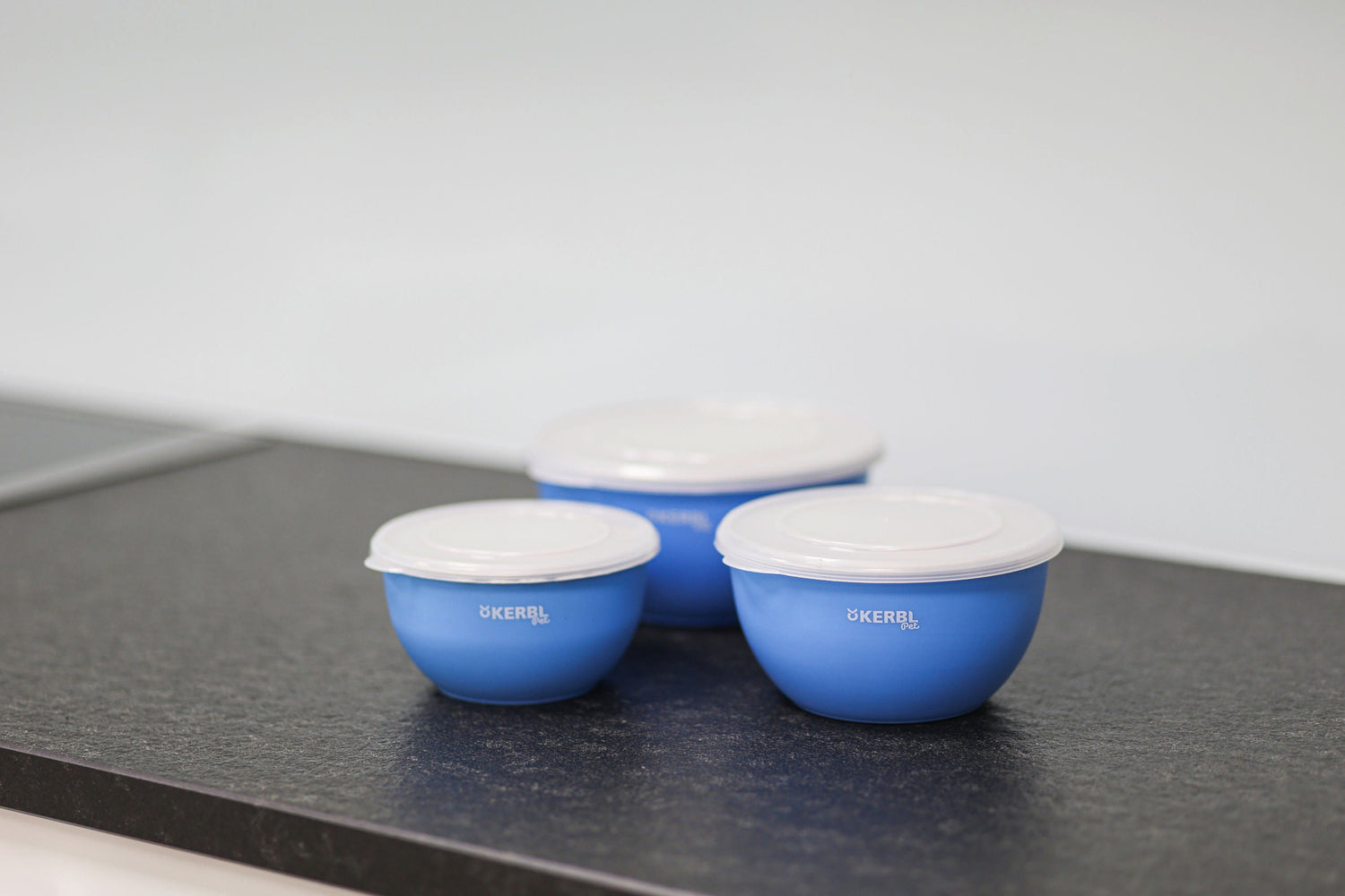 KERBL - Edelstahlnapf Set mit Deckel blau, 550ml/900ml/1200ml - 1 Stück - 80528.