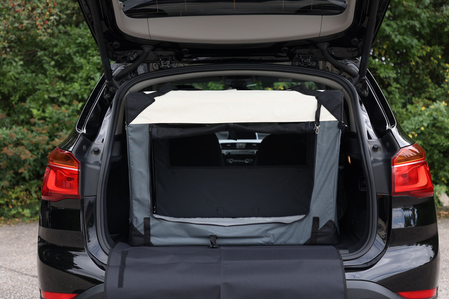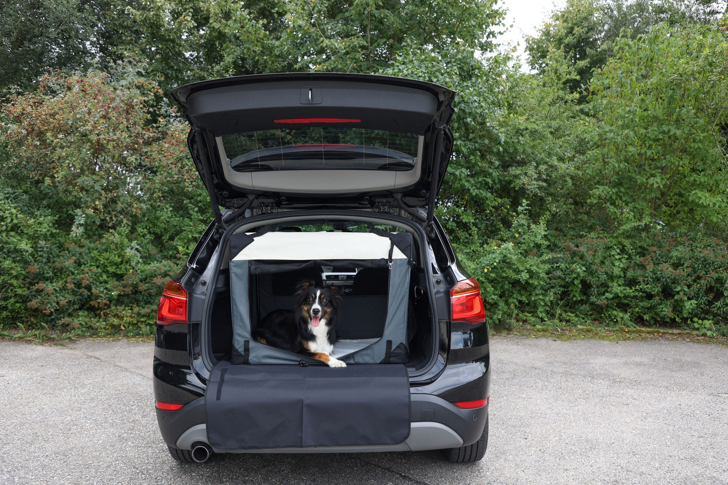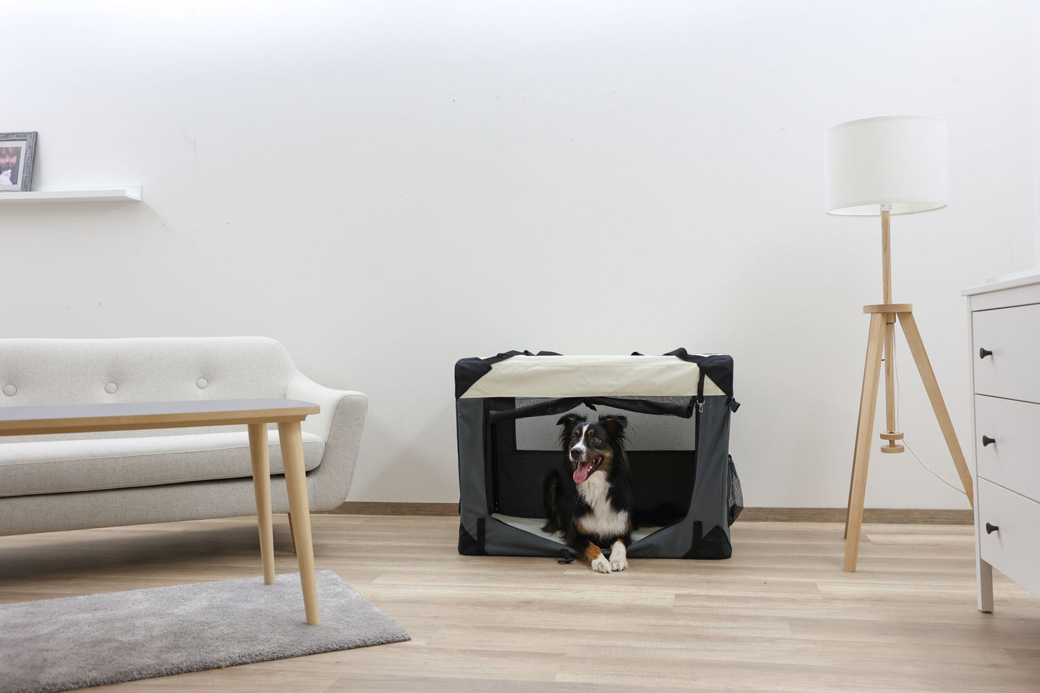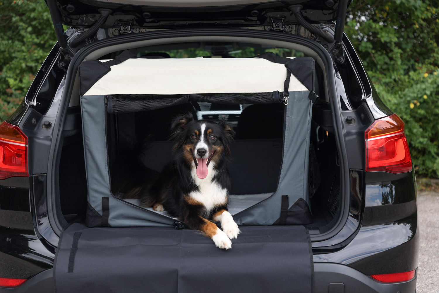 Sie suchen einen gemütlichen und gleichzeitig komfortablen Begleiter auf Reisen? Dann ist die Transportbox Journey genau das richtige für Ihren Hund. Ganz einfach kann diese in Sekundenschnelle aufgebaut und wieder zusammengelegt werden. Die Transportbox kann mit Hilfe einer Nylontasche platzsparend aufbewahrt werden. Das strapazierfähige und abwaschbare Nylonmaterial ist leicht zu reinigen. Dank einem Metallrahmen und Gummifüßen gewährt Ihnen die Transportbox eine sehr gute Standfestigkeit. Zusätzlich kann diese im Außenbereich mit Heringen fixiert werden. Die Transportbox besitzt dreiÖffnungsmöglichkeiten, die jeweils mit einem Reißverschluss versehen sind. Für eine angenehme Luftzirkulation sorgen Lüftungslöcher und Gitternetze. Der Liegebereich im Innenraum der Transportbox ist mit einer angenehmen Matte in Lammfell-Optik (30 °C waschbar) ausgestattet. Des Weiteren bietet Ihnen die Transportbox, Staumöglichkeiten für diverse Kleinigkeiten wie z. B. Trinkflaschen, Spielzeug und vieles mehr. • 3Öffnungsmöglichkeiten mit Reißverschlussfixierung • mit integrierter Matte aus Softplüsch (waschbar bei 30 °C), Seitentaschen, Flaschenhalter, Haltegriff und Schlaufen für Befestigungsgurt im Auto • abnehmbarer Stoßfängerschutz, verwendbar für vordere und seitlicheÖffnung • seitliches Fenster durch Sichtschutz abdeckbar • Netzeinsätze für gute Luftzirkulation • Gummifüße für eine bessere Bodenhaftung • aus strapazierfähigem, abwaschbarem Nylonmaterial • stabile Ausführung durch Metallrahmen • sekundenschneller Aufbau • platzsparend zerlegbar