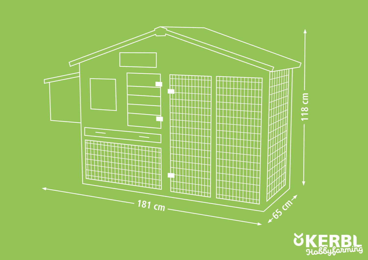 Kerbl Hühnerstall Bonny m. Metall- rahmen am Boden 181x65x118cm 81713