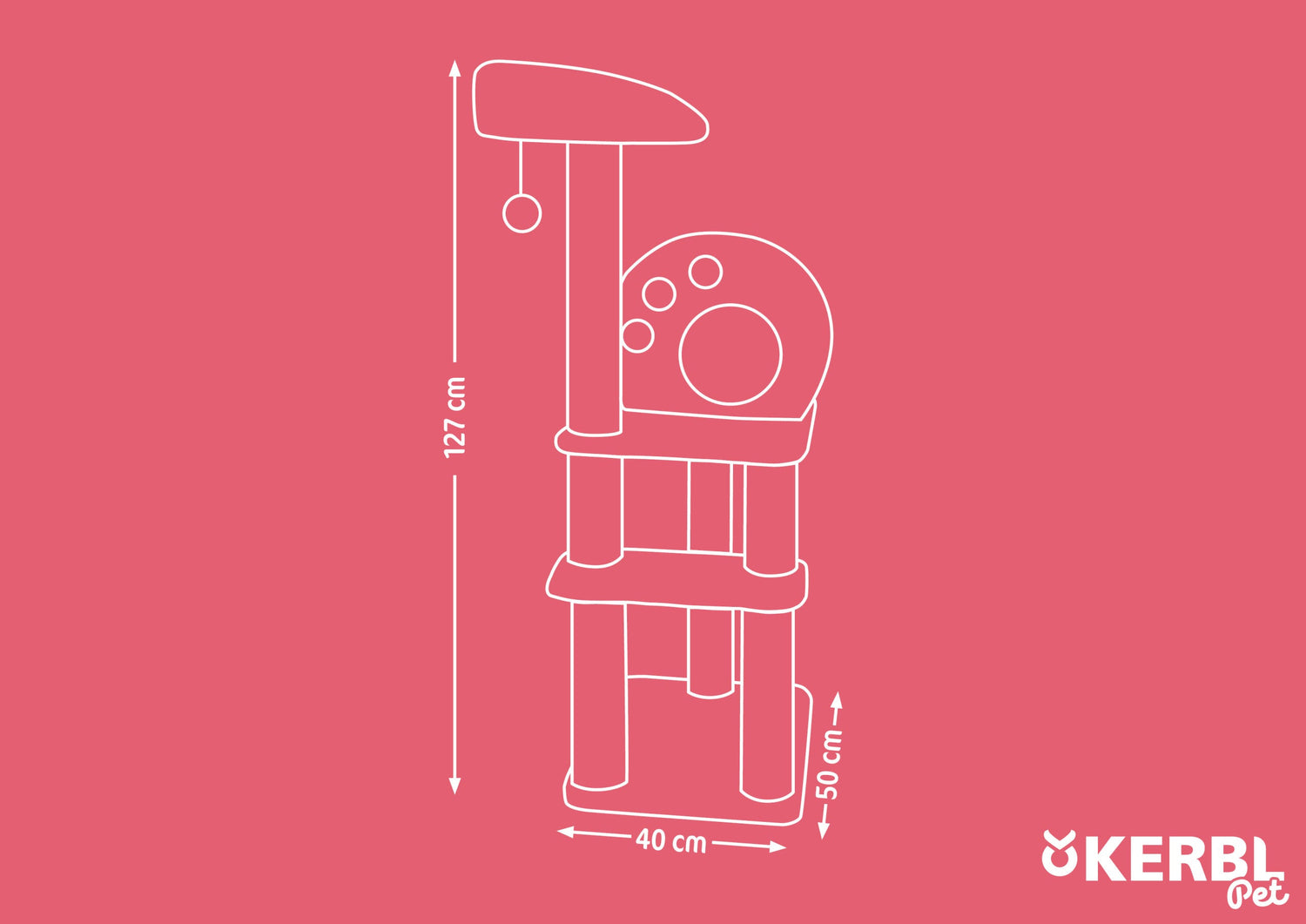 Schützen Sie Ihre Möbel und Teppiche vor den natürlichen Kratzgewohnheiten Ihres Stubentigers! Dieser attraktive Kratzbaum besteht aus: • 6 Sisalstämme ø¸ 9 cm (1 x 60 cm, 1 x 50 cm, 2 x 37 cm, 2 x 19 cm) • 1 runde Höhle mit 3 Fellmäusen am Gummiband • 1 gepolsterter Liegeplatz mit Plüschball am Gummiband • Maße der Bodenplatte: 50 x 40 cm • Gesamthöhe: 127 cm