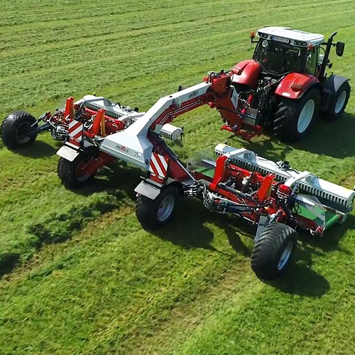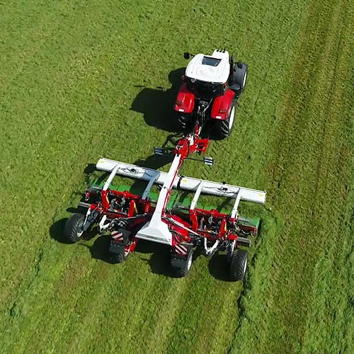 Thanks to its high flexibility of use, the machine can be used very universally for a wide variety of crops and harvesting methods. Lowest forage contamination thanks to the unique elastic pick-up, the dragging tines and the unique 4-wheel chassis that guides the working units precisely over any uneven ground thanks to the 4-joint kinematics.