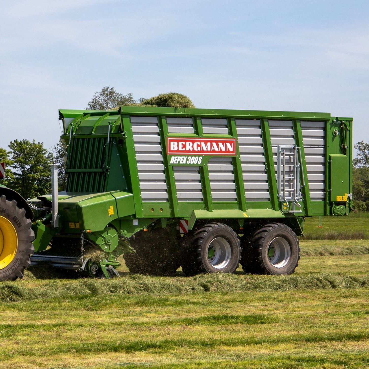 Le pick-up à entraînement hydraulique d'une largeur de 1 940 mm et doté de deux rouleaux à andains facilite le ramassage propre du fourrage. BERGMANN est le seul constructeur à proposer un pick-up piloté « ActiveLoad » et un pick-up non piloté « EasyLoad » pour le chargement des wagons. L'utilisateur peut ainsi décider quel pick-up convient le mieux à ses conditions d'utilisation.