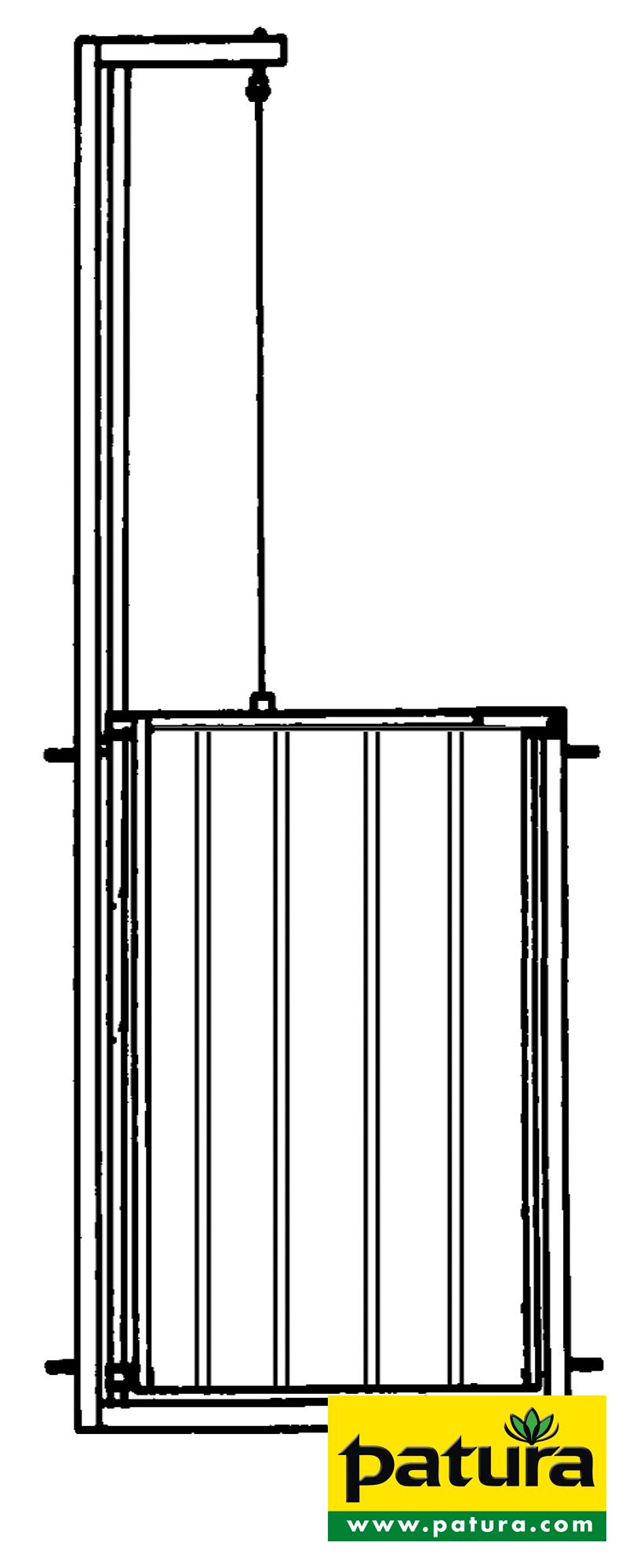 Patura Falltor mit Seilbetätigung, für Schaf Fanganlagen, verzinkt. Falltor. mit Seilbetätigung Länge: 9 cm Breite: 56 cm Höhe: 205 cm .