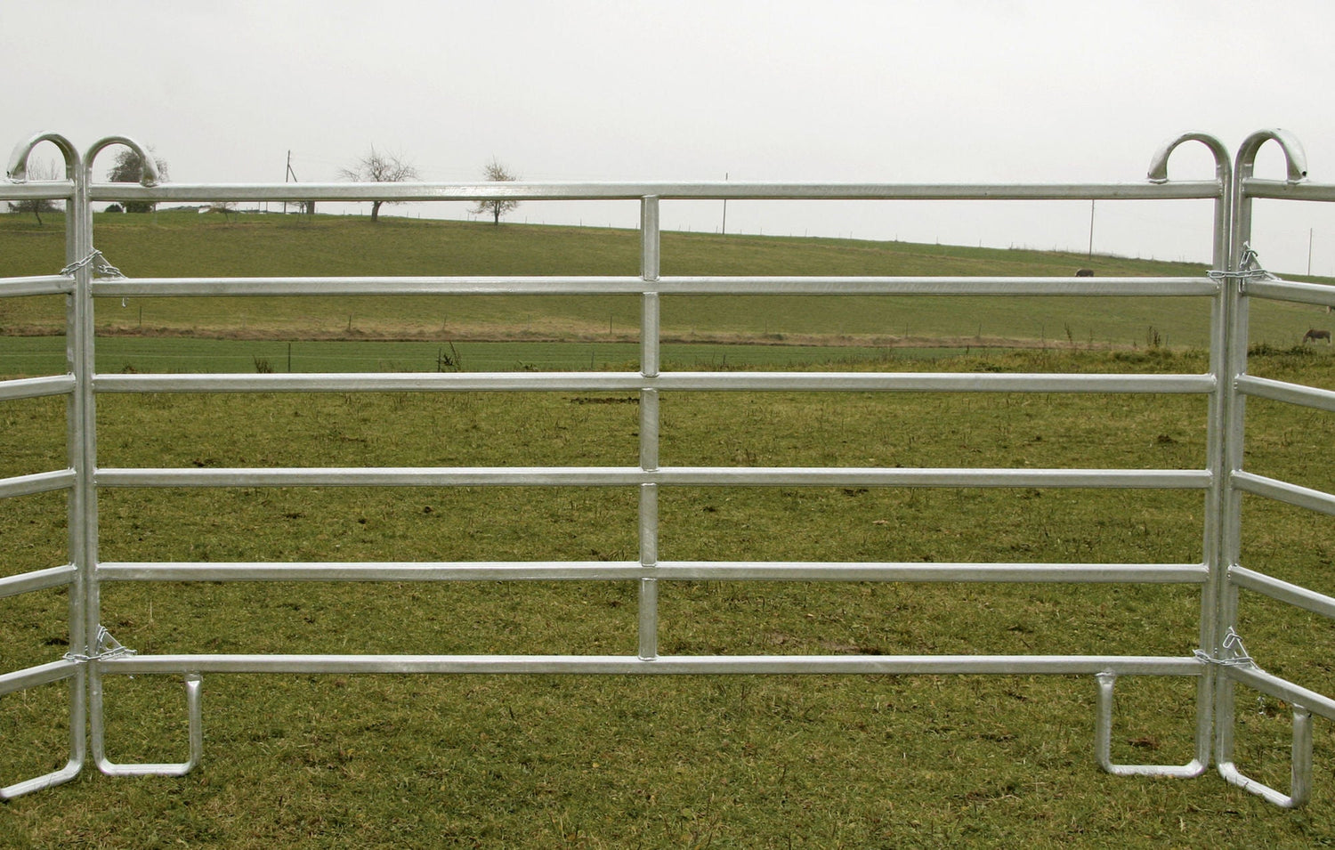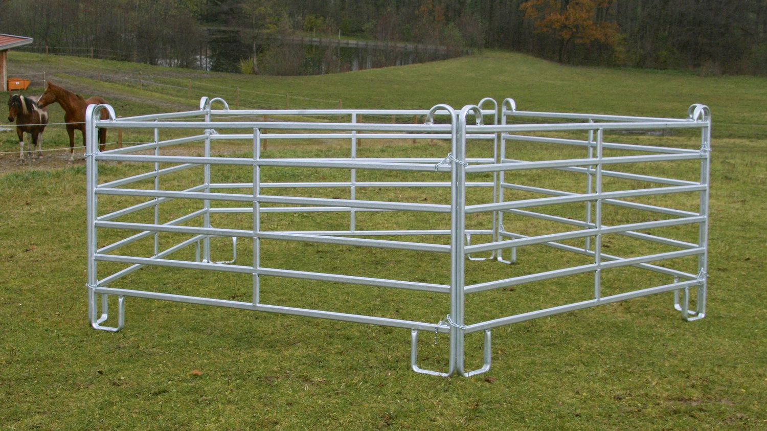 • ideal zum Bau mobiler und flexibler Einzäunungen, sowie von provisorischen Boxen und Stallungen • auch sehr gerne verwendet für die Einzäunung von Reitzirkeln und Longierplätzen • Höhe des oberen Rohres 1,60 m • Gesamthöhe 1,70 m • Sicherheits-Aufsprungbügel verhindert Verletzungen der Tiere. Beim Aufspringen auf das Panel kommt das Tier nicht zwischen die Panele • aus Flach-Oval-Rohr 50 x 30 x 1,5 mm • lichter Rohrabstand 20 cm • Schnell-Kettenverschluss erleichtert und beschleunigt das Verbinden mehrerer Panele • hohe Stabiliät bei geringem Gewicht • sehr guter, sicherer Stand durch U-förmigen Fuß • komplett feuerverzinkt