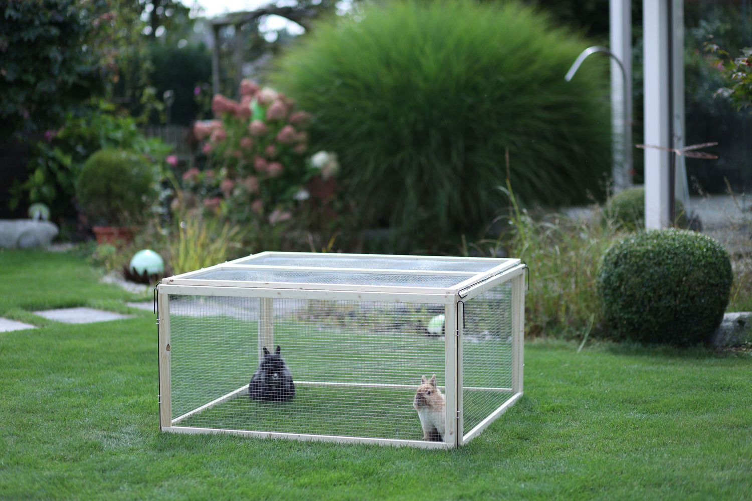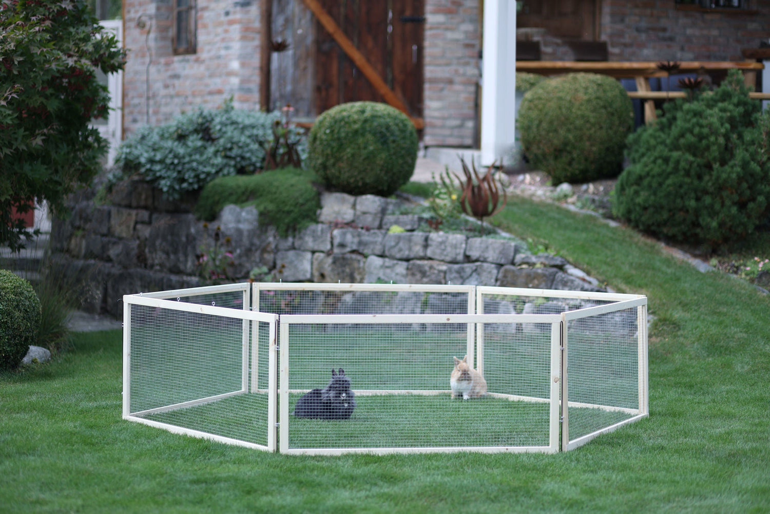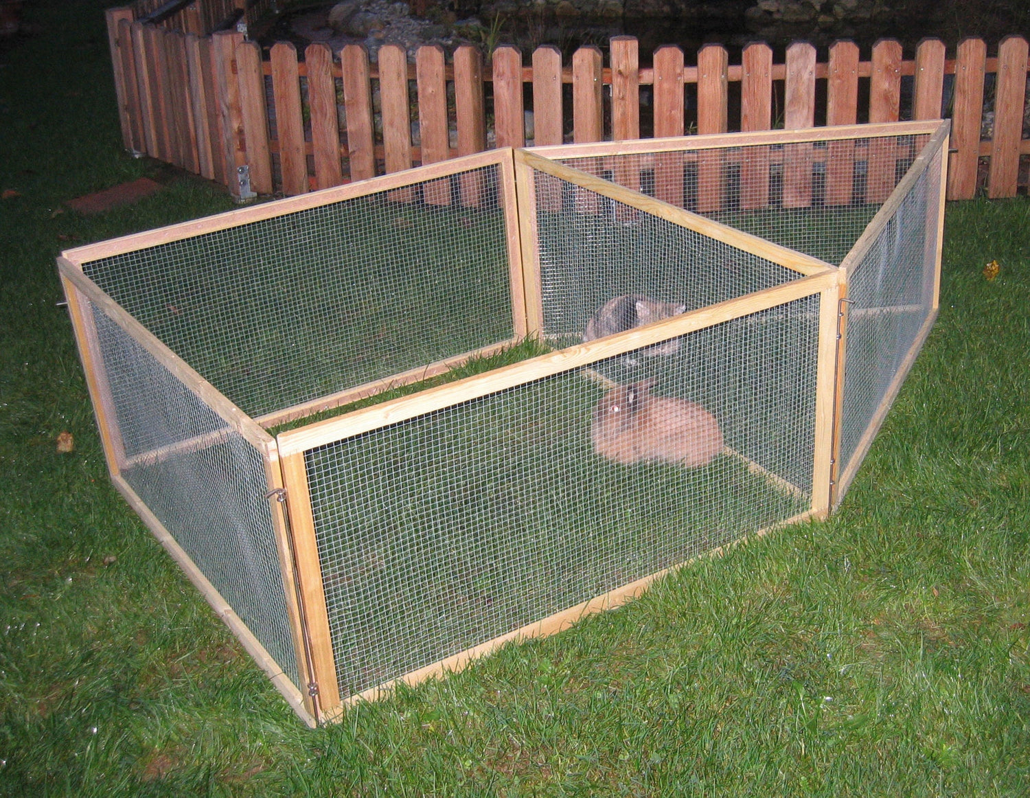 Sommerfrische im Garten! In diesem Auslaufgehege können Ihre Nager nach Herzenslust am frischen Grün knabbern, herumhoppeln und Haken schlagen. Leicht versetzbar! Mit ein paar Handgriffen verdoppelt sich das Nagerparadies von 1,44 m_ auf 2,88 m_. • mit Drahtgitter • bestehend aus 6 Elementen und 6 Erdspießen • Lieferung erfolgt zerlegt im Karton